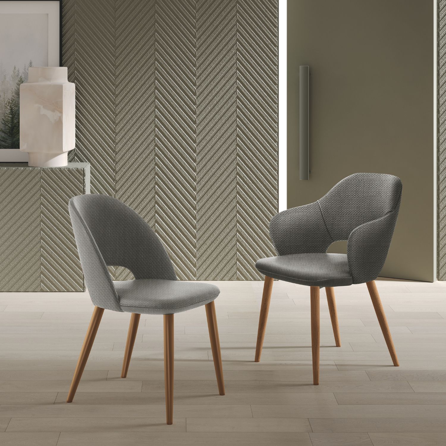 Palombina unisce comfort e raffinatezza in un design versatile. La scocca imbottita avvolge il corpo con delicatezza, mentre la struttura in frassino naturale o noce medio dona stabilità e calore. Una seduta elegante, pensata per arredare con armonia ogni ambiente.